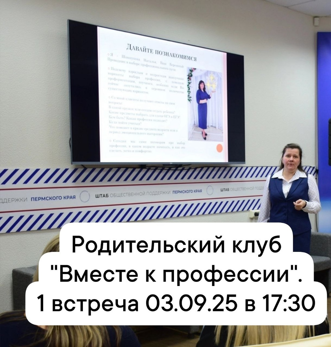 ✨Родительский клуб "Вместе к профессии" вновь открывает свои двери.✨ Зачем я создала этот клуб и провожу встречи? На встречах обсуждаем с родителями важные вопросы по профориентации. Не все родители знают что выбор профессии ребенка начинается не в 9 и не в 11 классе, а гораздо раньше, лет с 5. Удивлены? Да, и об этом я расскажу на первой встрече Родительского клуба в Ресурсный центр | «Пермь семейная» 3 сентября в 17:30. Разберем мифы про профориентацию, с какого возраста и как готовить ребенка к выбору профессии, выполним одно задание из моей авторской программы по профориентации подростков, обсудим вопросы, которые тревожат родителей. Встречи будут проходить 1 раз в месяц. Чтоб попасть на первую встречу необходимо пройти регистрацию nkosoft.ru/form/form/m Темы, которые запланированы: 1. Выбор профессии: в каком возрасте начинать? 2. Особенности подросткового возраста. 3. Поддержка подростка в период ОГЭ и ЕГЭ. 4. Профориентация подростков. 5. План развития навыков подростка. 6