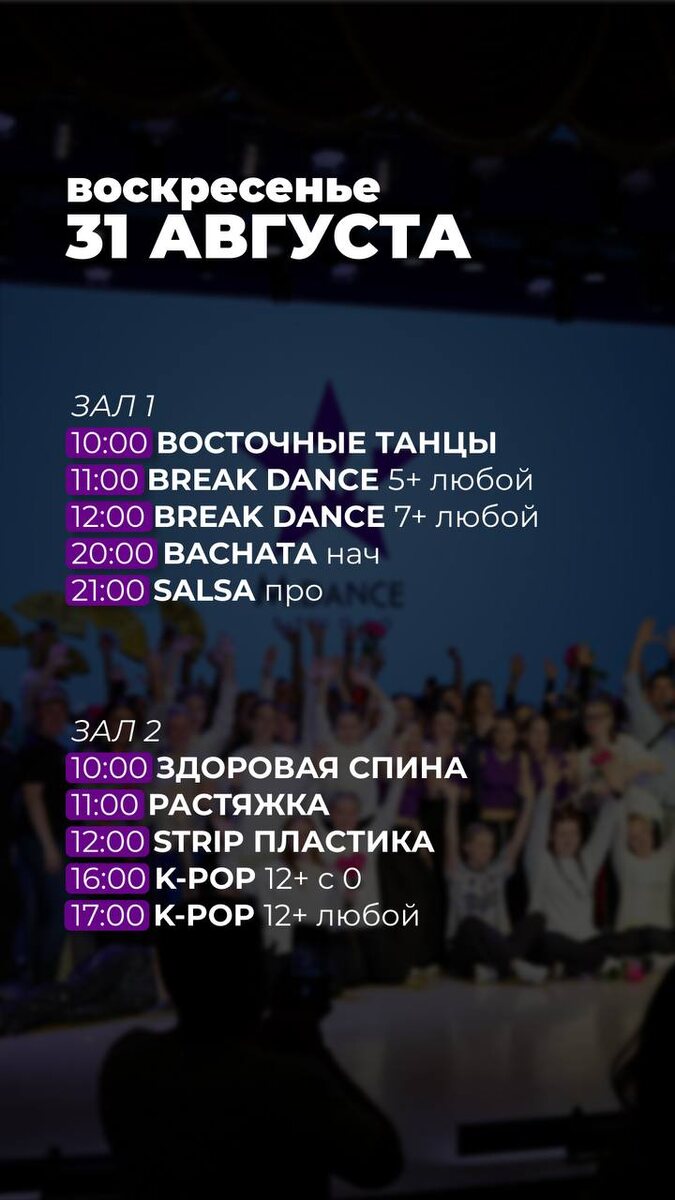 Провожаем лето вместе с танцами!💜 ✅️ Записаться в WhatsApp ✅️ Записаться в Telegram ✅️ Группа в ВК ✅️ Канал в Telegram ✅️ Наш сайт 💌 Наше полное расписание 📍 Долгопрудный, ул. Дирижабельная 15 "б" Мы на Яндекс Картах