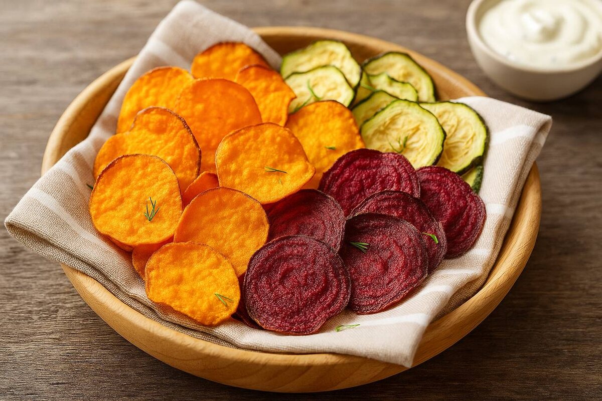 Домашние чипсы — это совершенно другой подход. Здесь мы используем цельные овощи: картофель, свёклу, кабачки, морковь или батат. Добавляем ровно столько масла, сколько нужно, регулируем количество соли и сами подбираем специи. В результате получаем закуску, в которой сохраняются витамины, клетчатка и натуральный вкус продуктов.