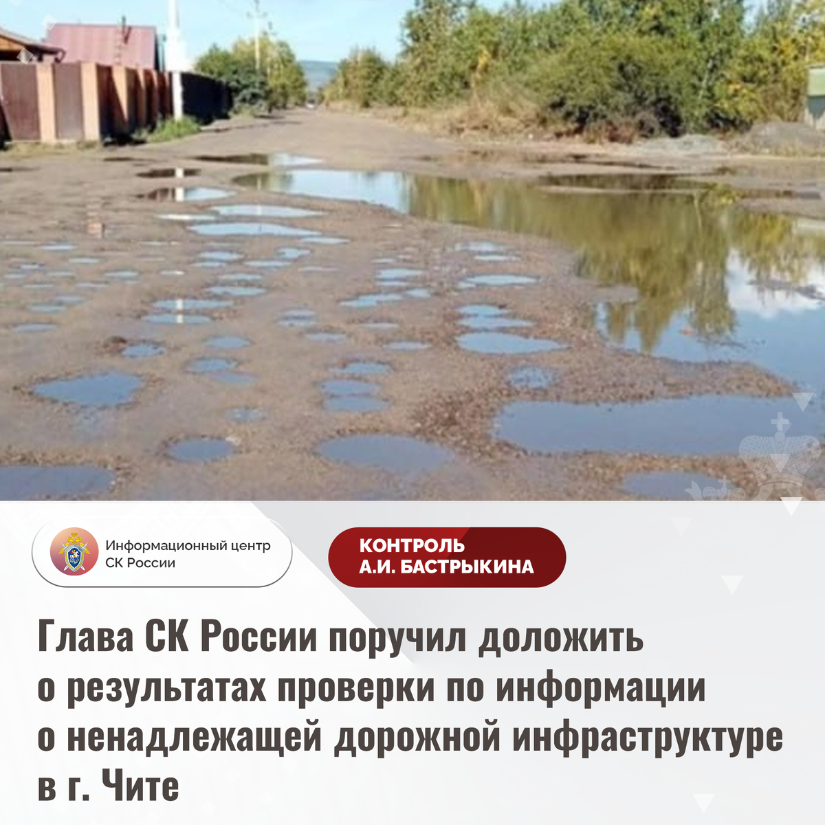 Глава СК России поручил доложить о результатах проверки по информации о ненадлежащей дорожной инфраструктуре в г. Чите