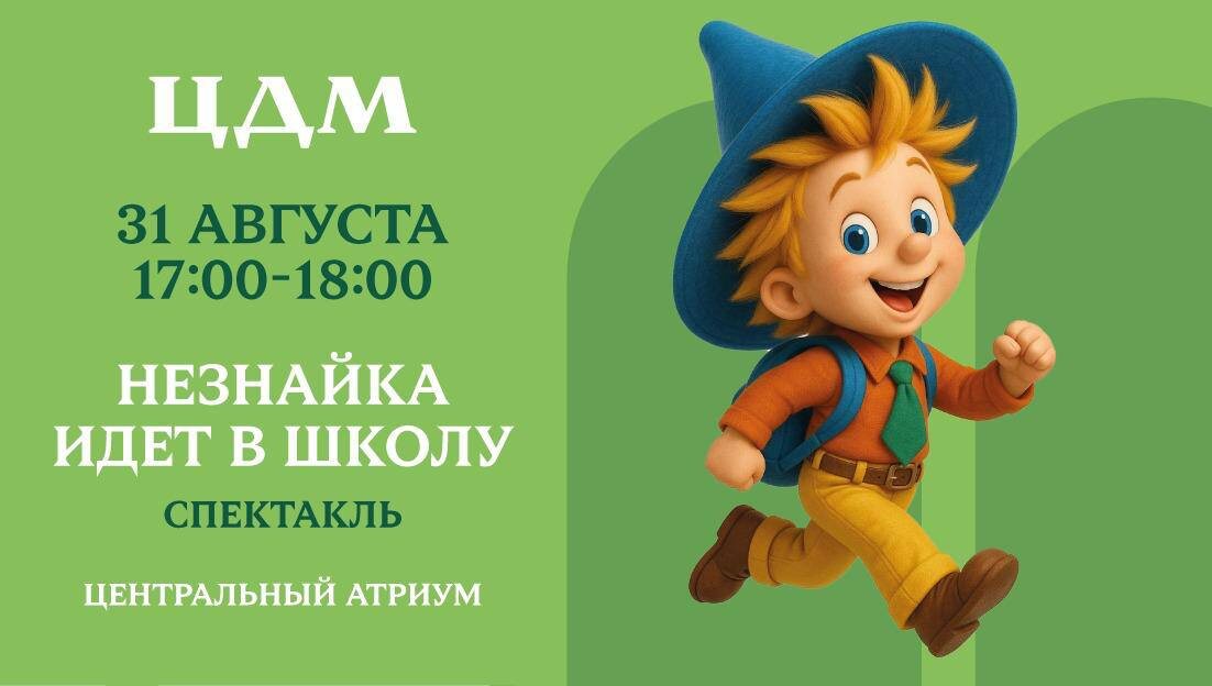 Завершающие выходные лета в ЦДМ: динозавры, подготовка к школе, литературные премьеры, концерт и большой модный показ! Лето подходит к концу, но ЦДМ не сбавляет темп. 31 августа ждём вас на яркие семейные выходные — будет насыщенно и празднично! 31 августа (воскресенье) — творчество и приключения • 13:00–20:00 — анимация и праздничная атмосфера • 17:00–18:00 — спектакль «Незнайка идёт в школу» по Н. Носову: Фея Знаний проведёт весёлый урок о важности учёбы и дружбы. 🦕 А ещё фестиваль «Динозавры на каникулах» продолжается до 14 сентября — успейте заглянуть! Встречаемся в главном атриум и других зонах Центрального детского магазина на Лубянке 💌 Вход свободный, 0+