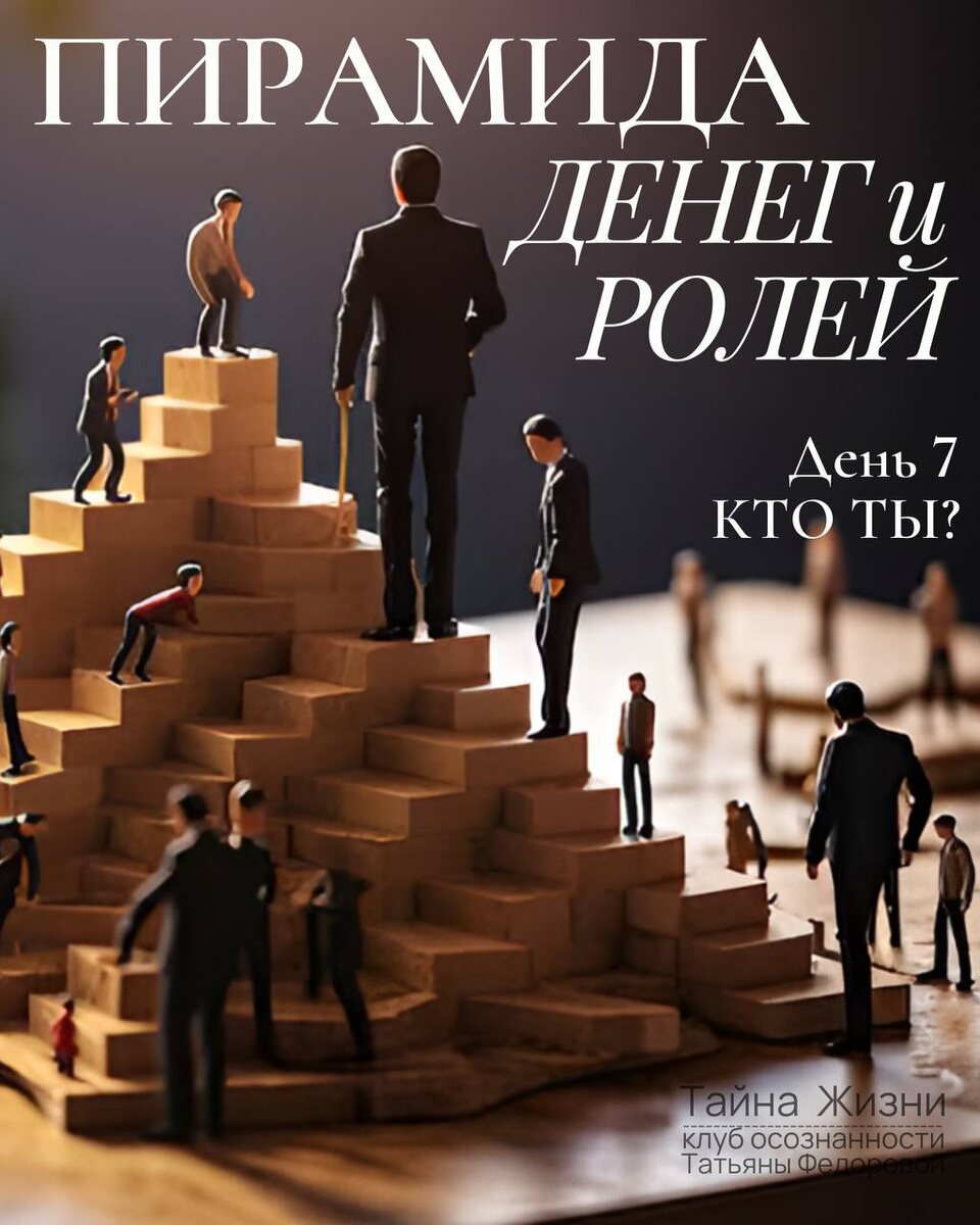 ПИРАМИДА ДЕНЕГ И РОЛЕЙ 🔹 День 7 Итог: Кто ты? Теперь посмотри на всю пирамиду: • Жертва — жалость и оправдания. • Ребёнок — капризы и сравнение. • Боец — напряжение и работа. • Творец — идеи и игра. • Создатель — присутствие и лёгкость. ✨ Вопросы для тебя: В какой роли ты чаще всего? На каком уровне твои деньги сейчас? И если бы ты сделал шаг выше прямо сегодня — что изменилось бы в твоей жизни? Практика: Выбери роль, где ты чаще всего. И в течение дня осознанно сыграй на уровень выше.