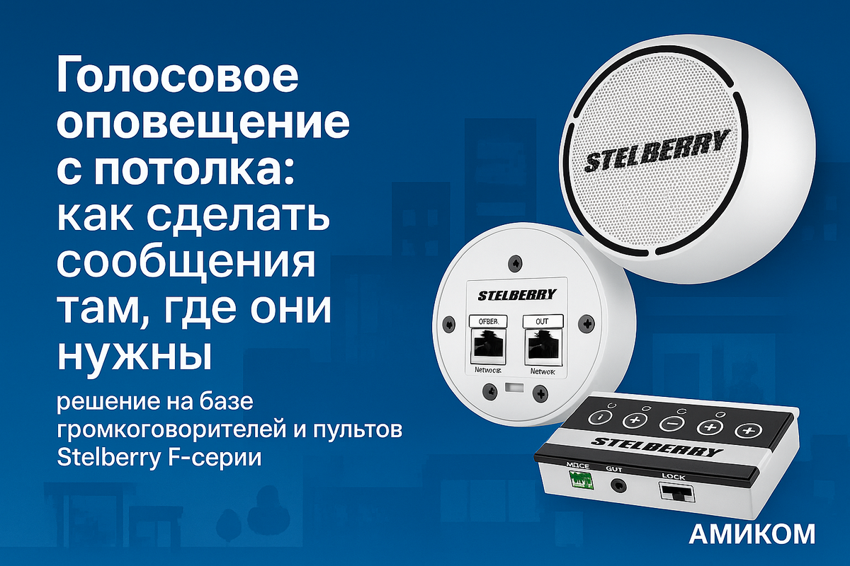 В будний день школа живет по минутам: звонки, объявления для отдельных классов, короткие инструкции в непредвиденных ситуациях. В торговом зале похожая логика: сообщение о новой партии товара в демонстрационной зоне, служебный вызов на склад, краткая инструкция на рампе. В обоих случаях важно одно — сообщение должно быть слышно ровно там, где оно нужно, и при этом его должны уметь воспроизвести ответственные сотрудники без долгих процедур. Потолочные громкоговорители в сочетании с пультом зонного оповещения решают задачу предсказуемо. Для школы это ровные уровни громкости по кабинетам и коридорам, для магазина — адресная работа по залу, кассам и складу. Управляющий формирует группы, выбирает нужную зону и сразу говорит в микрофон, а при необходимости фиксирует эфир в видеоархиве через ближайшую камеру. Архитектура строится на пульте зонного оповещения Stelberry F-740 и потолочных громкоговорителях. Пульт формирует группы, управляет линиями и подаёт питание; у него есть аудиовыход линей