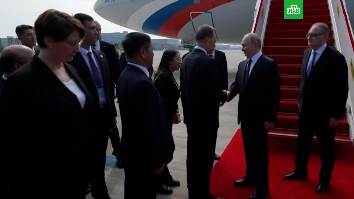 [ Смотреть видео на сайте НТВ ] В официальном Telegram-канале Кремля опубликовано видео прибытия президента РФ Владимира Путина в Китай с рабочим визитом. На записи видно, как главу государства встречает почетный караул в аэропорту города Тяньцзинь. После церемонии приветствия Путин сел в автомобиль Aurus с китайскими номерами. Напомним, что визит президента России в КНР продлится четыре дня. В Тяньцзине Путин примет участие в саммите Шанхайской организации сотрудничества и проведет несколько двусторонних средств. Также в ходе своего визита президент России посетит парад по случаю 80-летия освобождения Китая от японских захватчиков и окончания Второй мировой войны. [ Смотреть видео на сайте НТВ ]