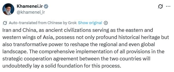 Supreme Leader Khamenei's message for SCO in CHINESE