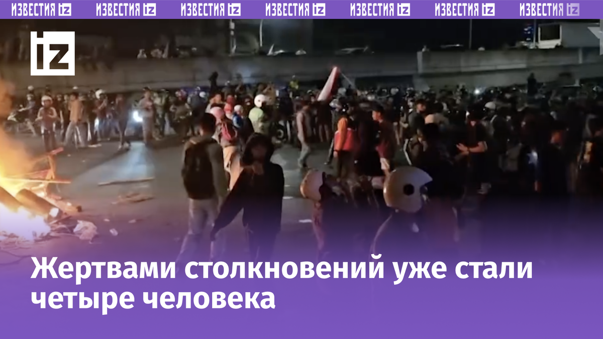 Президент Индонезии отменил визит в Китай из-за беспорядков в своей стране. Он принес извинения Пекину, заявив, что должен лично контролировать ситуацию. Многотысячные протесты в столице государства Джакарте не утихают уже неделю. Они переросли в огненный хаос после того, как полицейская машина насмерть задавила мотоциклиста. Демонстранты начали обстреливать силовиков фейерверками, поджигать их автомобили. Изначальная причина протестов – недовольство граждан условиями труда. Они требуют повысить им зарплаты, остановить массовые увольнения и снизить налоги. Жертвами столкновений уже стали четыре человека.