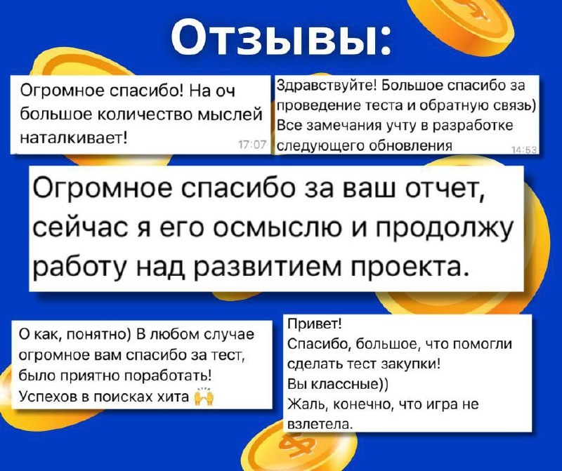 Бесплатно зальем трафик на $100 в твою игру. Разрабатываешь мобильную игру и не знаешь, будет ли она успешной? Мы — мобильное издательство Apollo Publishing, и готовы вложить $100 в трафик на тест твоего проекта. За полгода мы протестировали 60+ игр и потратили на это $6,000 (читай отзывы). И всё ради того, чтобы найти достойные проекты и вырастить их вместе — несколько таких уже в партнёрской работе. ❓Что ты получаешь: — Рекламу у реальных пользователей. — Честный фидбэк от опытных UA-спецов и продюсеров. — Метрики, цифры, рекомендации. — Возможность стать партнёром издательства с полной поддержкой. Хочешь узнать потенциал своей игры прямо сейчас? Пиши Ангелине 👉 @aaamarch — берём в работу несколько проектов в месяц, и каждый — смотрим лично.