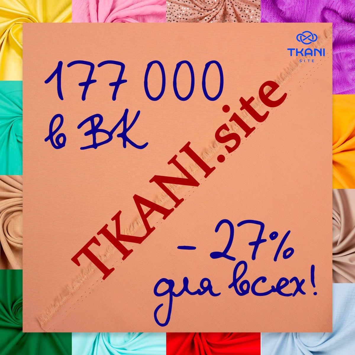 177VK25 - это промокод, который даёт скидку 27% на все товары без скидки на tkani.site
