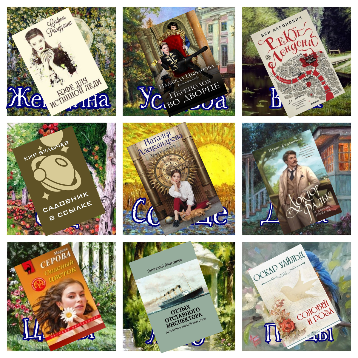 Всем привет. Сегодня подвожу итоги летнего челленджа "Книжное бинго "Город-Сад". Несмотря на загруженное и активное лето мне удалось собрать свое СуперБинго. Какие книги я могу посоветовать прочитать: 1. "Женщина" - Софья Ролдугина "Кофе для истинной леди" 2. "Усадьба" - Надежда Цыбанова "Переполох во дворце" 3. "Сад" - Кир Булычев "Садовник в ссылке" 4. "Дача" - Игорь Евдокимов "Доктор Фальк и дачные убийства" 5. "Цветы" - Марина Серова "Опасный цветок" 6. "Птицы" - Оскар Уайльд "Соловей и роза" Мое разочарование: 1. "Вода" - Бен Ааронович "Реки Лондона" 2. "Солнце" - Наталья Александрова "Хранитель солнца" 3. "Лето" - Геннадий Дмитриев "Отдых отставного инспектора. Детектив в английском стиле" В принципе, результат книжного челленджа неплохой. Из 9 прочитанных книг, 6 произведений я прочитала с огромным удовольствием. Спасибо Юлии ("Ветер в книгах") за организацию увлекательного книжного челленджа. А Вы собрали свое СуперБинго?