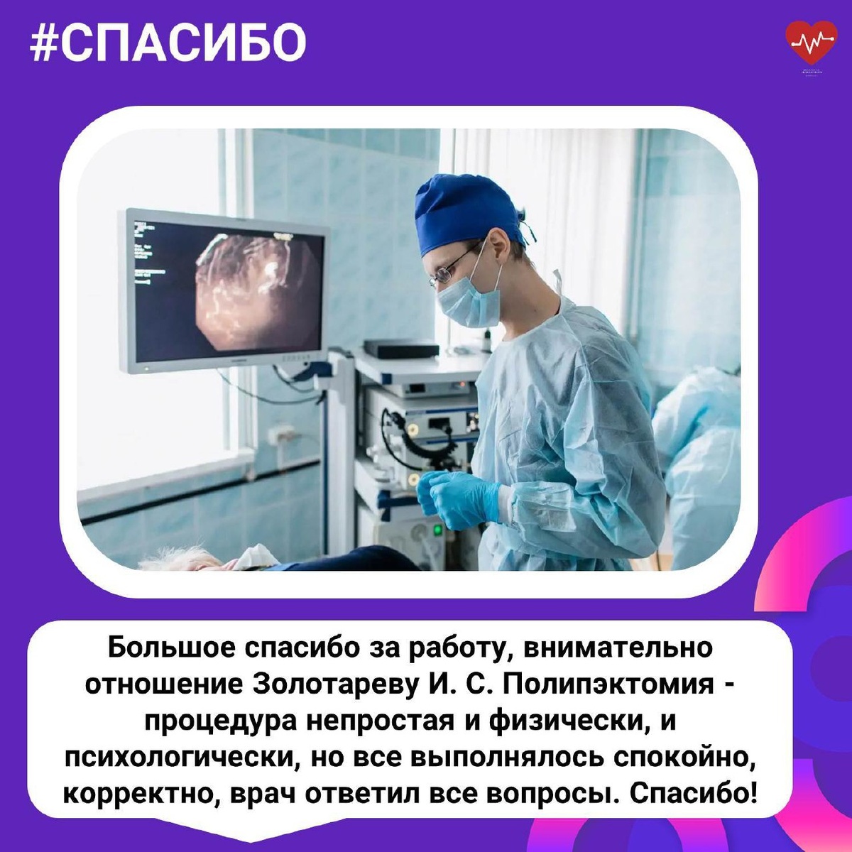 Продолжаем публиковать благодарности, которые мы получаем от пациентов. На этой неделе размещаем благодарность эндоскописту БСМП - Золотареву Ивану Сергеевичу Оставить благодарность медикам можно сканируя QR-код с помощью камеры вашего смартфона. Коды находятся на кабинетах врачей в поликлиниках и стационарах.