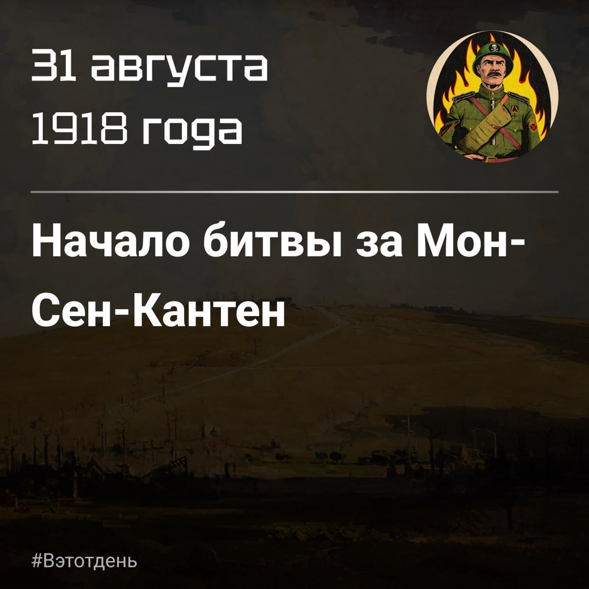 31 августа – 3 сентября 1918 года австралийские войска провели успешное наступление против германских сил в районе города Мон-Сен-Кантен (департамент Сомма, Франция). Сражение стало одним из ключевых эпизодов Стодневного наступления, ознаменовавшего решающий перелом в войне. После победы союзников в битве при Амьене (8–11 августа 1918) фронт Германской империи начал рушиться. Союзное командование стремилось развить успех, продвигаясь к линии Гинденбурга. Особую роль в этих операциях сыграл Австралийский корпус под командованием генерала Джона Монаша. 31 августа 1918 года австралийские части начали наступление на Мон-Сен-Кантен, важный узел обороны германцев. Несмотря на упорное сопротивление и сильные укрепления, австралийцы смогли прорвать первую линию обороны. В уличных боях, которые велись с большими потерями, союзники захватили ключевые позиции и вынудили немцев отступить. К 3 сентября город оказался полностью под контролем Антанты. Победа у Мон-Сен-Кантена открыла союзникам пу