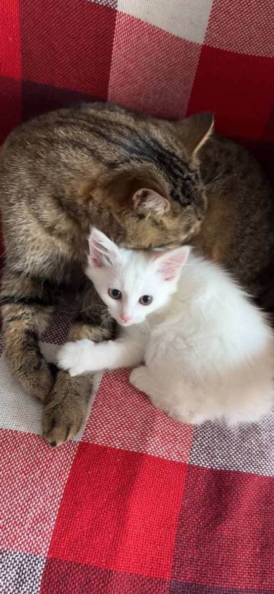 Белоснежка передаёт привет из дома! Теперь её зовут Персик 🍑, и она дружит с котом Сидом — почти как в «Ледниковом периоде» 😄. Скучать некогда — теперь у неё семейные приключения и море любви! Спасибо всем кто переживал за малышку 🫂❤️ #снежинка_амины #приветиздома #мурмяу_нашлидом #бездомные_кошки_ищут_дом