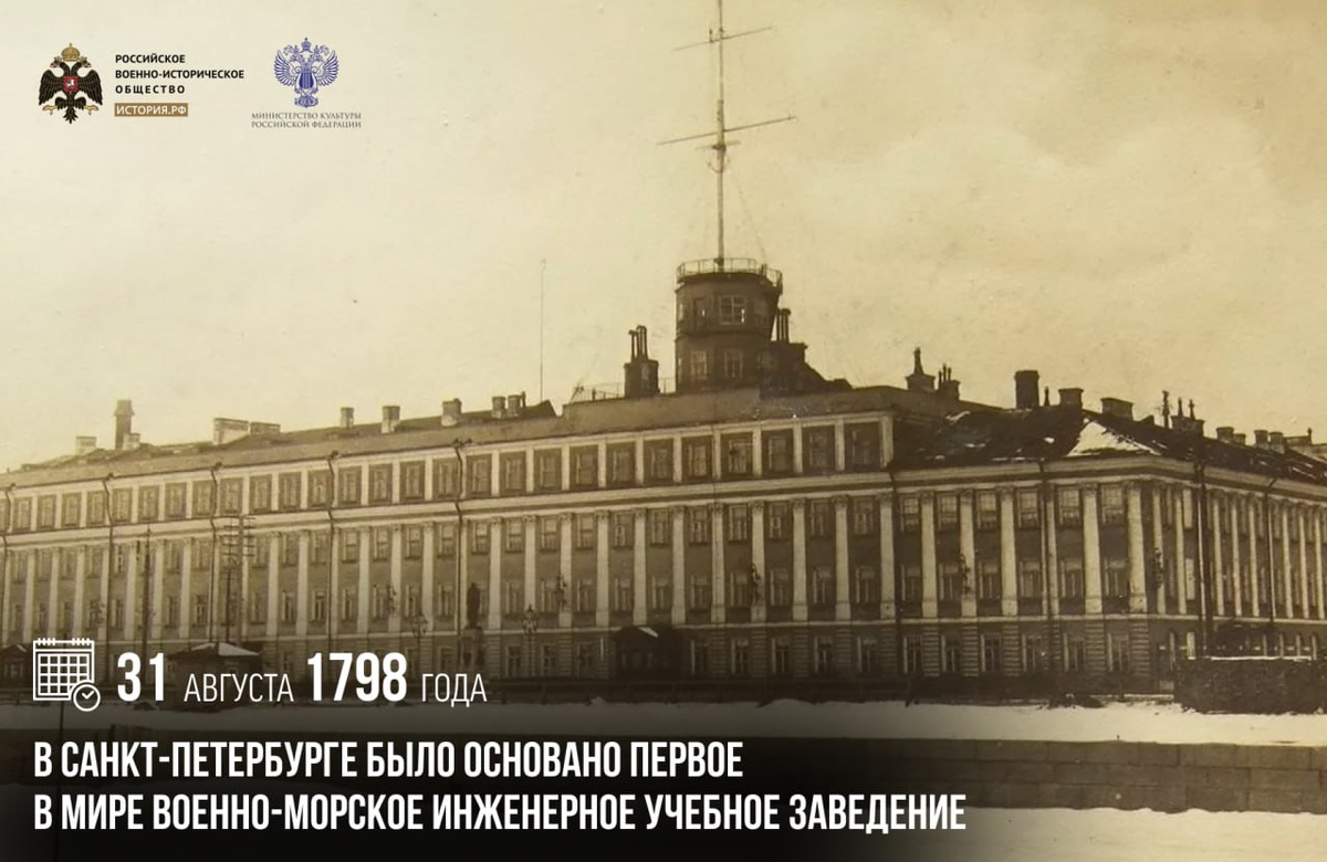 31 августа 1798 года в Санкт-Петербурге было основано первое в мире военно-морское инженерное учебное заведение