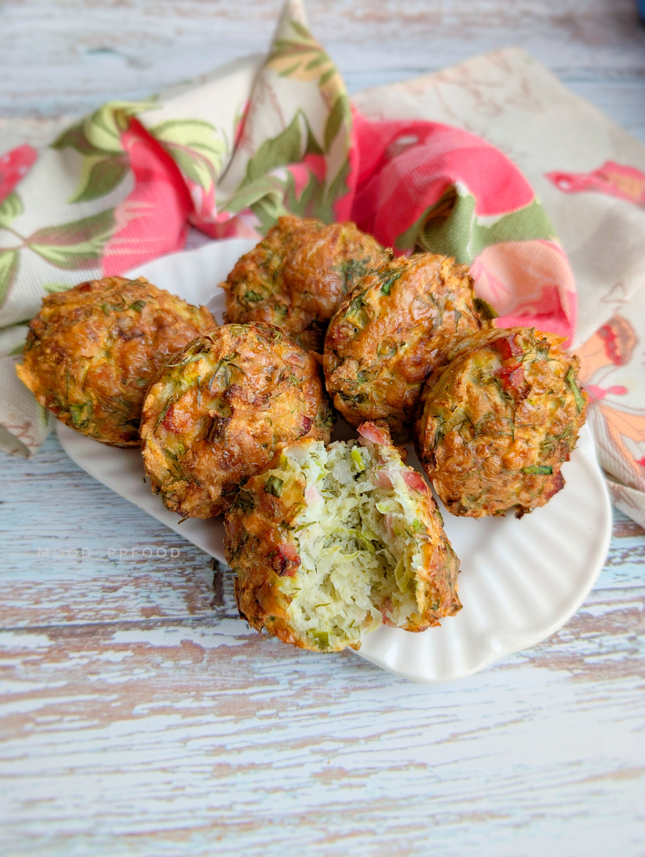 Кабачок - 150 г. (В отжатом виде) Яйцо куриное - 1 шт. Сыр лёгкий - 60 г. Ветчина из индейки - 60 г. Мука Рисовая - 50 г. Разрыхлитель - 5 г. Соль по вкусу, но немного ветчина и сыр дадут солоноватости. Зелень: у меня укроп и зелёный лук. 1️⃣ Кабачок натираем на мелкой тёрке и отжимаем. Ветчину нарезаем кубиками, зелень измельчаем, а сыр натираем. 2️⃣ В миске смешиваем: кабачок, ветчину, сыр, одно яйцо, 50 г. муки, чайную ложку разрыхлителя, соль и зелень. 3️⃣ Полученную массу распределяем по формочкам для кексов и запекаем при 180° 30-35 минут. Готово, приятного аппетита 😋