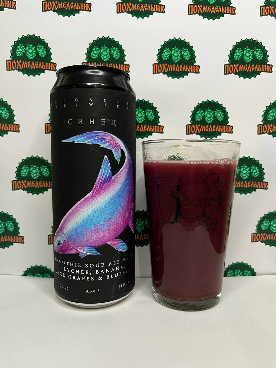 Статистика: пивной напиток непастеризованный нефильтрованный неосветленный, алкоголь - 5% об., экстрактивность начального сусла - 20%, горечь 10 IBU, состав: вода подготовленная (исправленная), солод пивоваренный ячменный, пюре банана, пюре личи, пюре черники, сок винограда, хмель, дрожжи пивные. Объём: 450 мл Дата розлива: 05.06.2025 Изготовитель: ООО «Солар Бир», Россия, г. Москва. Адрес производства: Россия, Московская область, г. Подольск. Изготовлено по заказу ООО «Сергакор» По-братски: из всех сушеных рыб под пиво я больше всего люблю синец. Само главное в том, чтобы он был и не пересушен и чтобы не был влажным, такой альденте, как говорится. И вот есть несколько магазинов рядом с моим домом, в котором продают именно такой. Да бывает разное, поставщики халтурят, магазин требует, но чаще самое то - сочный и с жирком, а иногда и с икрой, мммм, вкуснота. Не так давно наш главный крафтовый рыбак Sergacore сварил пиво под названием «Синец». И оно разлетелось очень быстро, я не смог ег