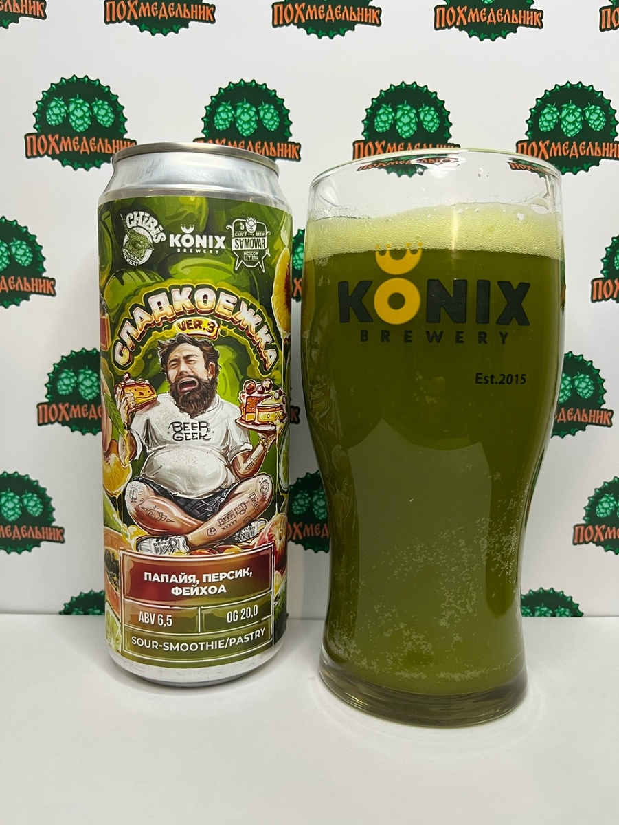 Статистика: пивной напиток нефильтрованный непастеризованный неосветленный, начальная экстрактивность сусла: 20.0%, алкоголь - 6.5% об., состав: вода подготовленная (исправленная), солод пивоваренный ячменный, лактоза, пюре папайи, пюре персика, пюре фейхоа, хмель, дрожжи пивные, ароматическая добавка, сорбат калия (Е202). Объём: 450 мл Дата розлива: 22.05.2025 Изготовитель: ООО «Пивоварня Чибис», Россия, г. Москва По-братски: занесла судьба в те края, где счастлив был когда-то я. Вроде как-то так пел в песне Владимир Кузьмин. И действительно, в тех краях где находиться магазин «Лагермания» я встречался с девочкой, у нас была какая-то любовь. Было хорошо. Эх. Ладно, дела минувших лет вспоминать тяжело. А вот то, что было пару дней назад - легко. Короче, зашел я в некогда любимую «Лагерманию» и расстроился. От былого величия осталось мало, ассортимент не большой как и сам магазин. Позырил по полкам и внезапно обнаружил это. Прошлые две версии я пил и они были вполне хороши. Что ж в трет
