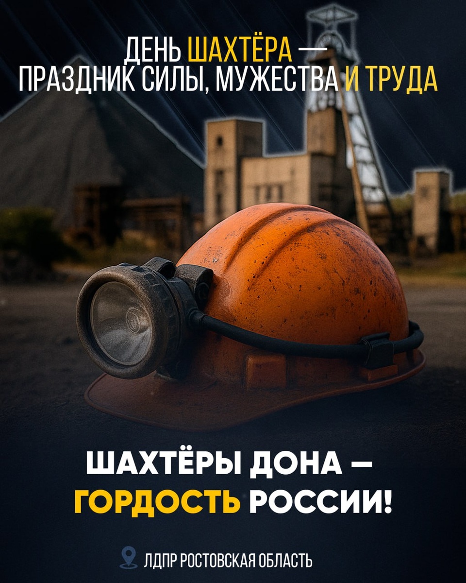 День шахтёра 💠 Сегодня вся страна чествует шахтёров — людей, которые своим самоотверженным трудом обеспечивают энергетическую безопасность России. 💠 Ростовская область — один из регионов, где профессия шахтёра имеет особое значение. Шахты, Новошахтинск, Зверево, Гуково — города, выросшие на угольной отрасли, и тысячи семей здесь связаны с этой профессией. 💠Шахтёрский труд всегда был символом мужества, стойкости и преданности делу. Он требует невероятной силы духа и готовности каждый день спускаться под землю ради будущего своих семей и страны. «Шахтёры Дона — это люди огромной силы и мужества. Они заслужили уважение и признательность за то, что их ежедневный труд становился фундаментом развития нашего региона и всей страны. ЛДПР всегда будет рядом, защищая интересы шахтёрских семей и добиваясь достойных условий для их жизни и работы», — отметил руководитель фракции ЛДПР в Законодательном Собрании Ростовской области Денис Фраш. ✨✨✨ Ростовское региональное отделение ЛДПР поздравл