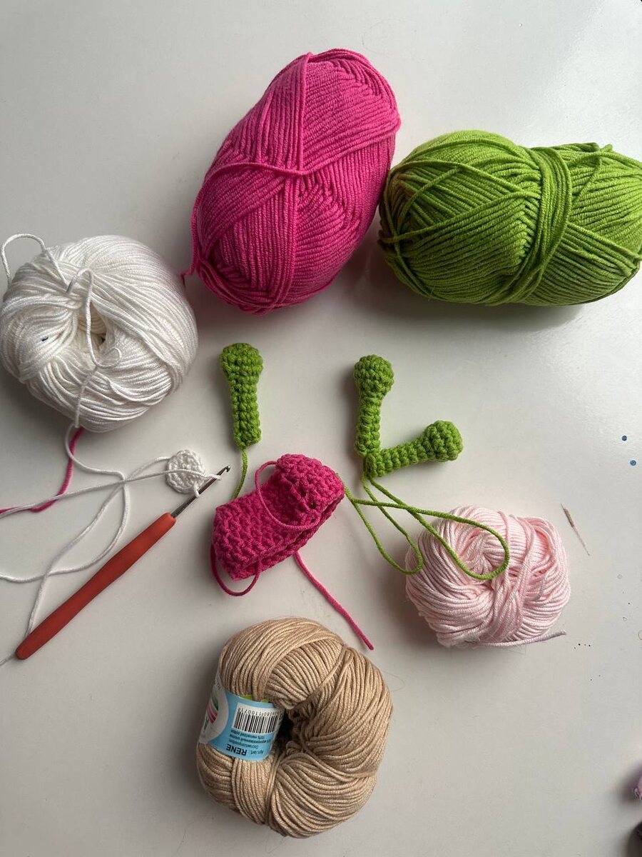 хотела выложить еще один рилс про сумку, но сегодня в инстаграм все выкладывают рекламу, чтобы напоследок заработать денег, а завтра всех завалит контентом с 1 сентября. не до моей сумки, короче) а я по тихой заказываю материалы на будущие идеи: стеклянную мозаику, различную пряжу, и даже вышивку на футболку… на удержалась и начала вязать сумку-лягушку, хотя это пока больше похоже на расчлененку: пальцы, глаза, руки, ноги, комбинезон. перепонки мне уже надоело вязать после третьей. схему нашла в интернете, она на английском и с сокращениями, но благодаря чату GPT я сделала ее подробной и на русском. поделюсь потом, когда закончу. а вообще давно я не шила ничего, точнее сказать, давно я ничего не до-шивала, потому что недошивы и крой копятся в геометрической прогрессии 😅