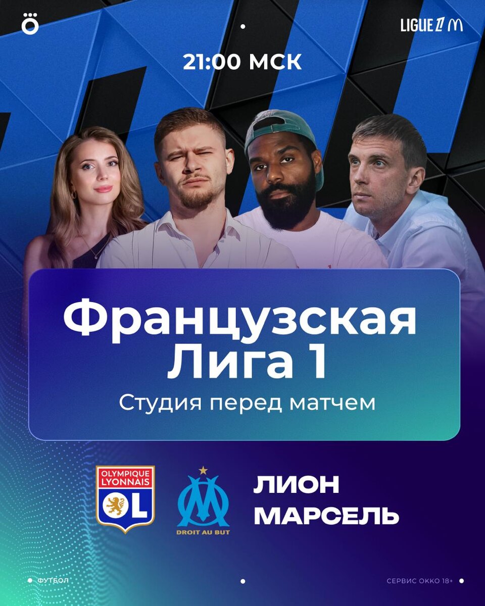 Главный матч тура Лиги 1 уже сегодня ⚽️⚽️ Дарья Исаева, Дмитрий Чельцов, Брайан Идову и Александр Грищенко обсудят встречу двух «Олимпиков» в студии. 🎙 Матч прокомментирует Лионель Абба. Доступна и альтернативная звуковая дорожка с тифлокомментарием Алексея Золина. Начинаем в 21:00. Включай разогрев в Okko, на YouTube и в VK Видео!