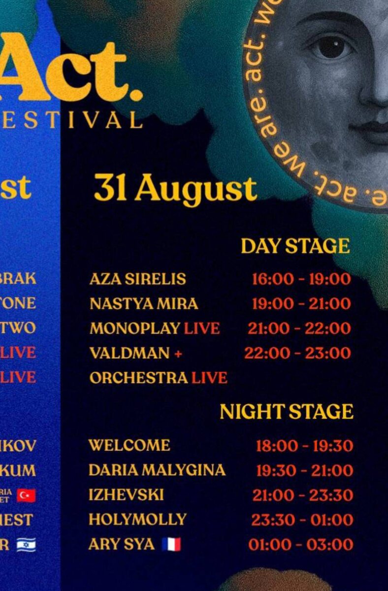 ACT FESTIVAL в ДК Кристалл 30-31 августа 31 августа — второй день фестиваля, кульминация. Оркестры, живые лайвы, финальные треки и то мгновение, когда всё вокруг замирает, чтобы запомнить лето навсегда. 🎟️ Билеты FC / DC 18+ 📆 30-31 августа 📍 ДК Кристалл, Москва, Самокатная 4с11