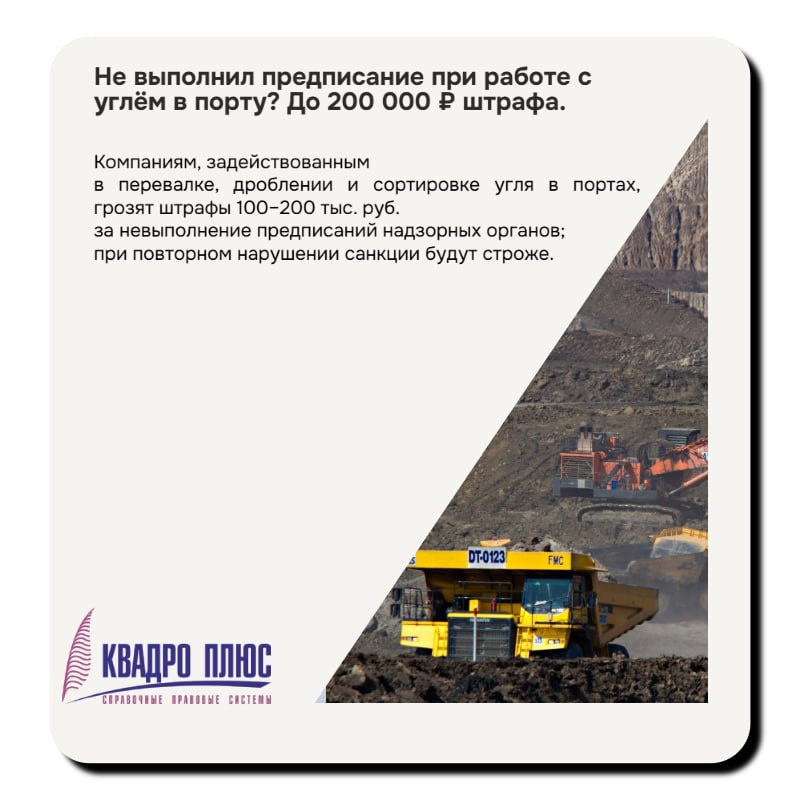 ⚡️Какие важные законы вступают в силу в сентябре ✅Вводится административная ответственность за невыполнение предписаний при работе с углем ✅Внесены изменения в Трудовой кодекс РФ ✅Новый порядок расчета среднего заработка ✅Новые правила проведения противопожарных инструктажей ✅Увеличен размер пособия по беременности и родам обучающимся женщинам ✅Уточнен порядок поступления в вузы для выпускников колледжей ✅Ужесточается ответственность для иноагентов ✅ Закон о периоде "охлаждения" по кредитам для потребителей ✅Уточнены правила перехода доли в ООО и применения преимущественного права ✅Работникам подземных работ установлена компенсация за нормативное время на передвижение в шахте #важныезаконы Компания Квадро Плюс новости о налогах и законах