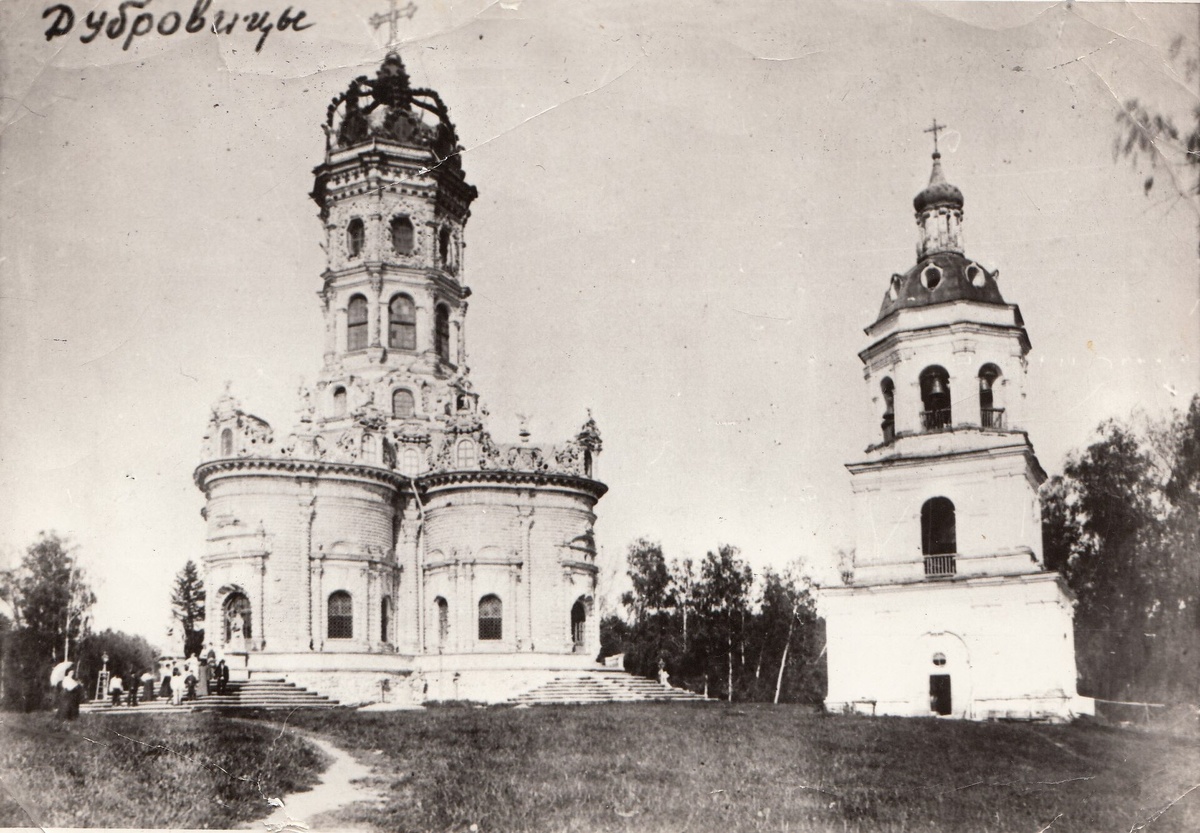 Сегодня в рубрике #староефото у нас сразу два старых изображения: гравюра и фото. А видим мы на них - знаковое для истории русской архитектуры сооружение, тем более, что храм и имеет посвящение Знамения Пресвятой Богородицы. Он сооружен в усадьбе Дубровицы, ныне входящей в городской округ Подольск Московской области на рубеже веков. Точнее - XVII и XVIII века (1690-1704 годы). Это уникальное для конца XVII века центрическое сооружение (в плане - равноконечный крест с закругленными концами) по гипотезе историков архитектуры выстроено шведским архитектором Никодемусом Тессином-младшим. Статья о нем еще впереди, а сегодня у нас офорт с гравюры 1790-х годов и фото 1900-х со старой колокольней.