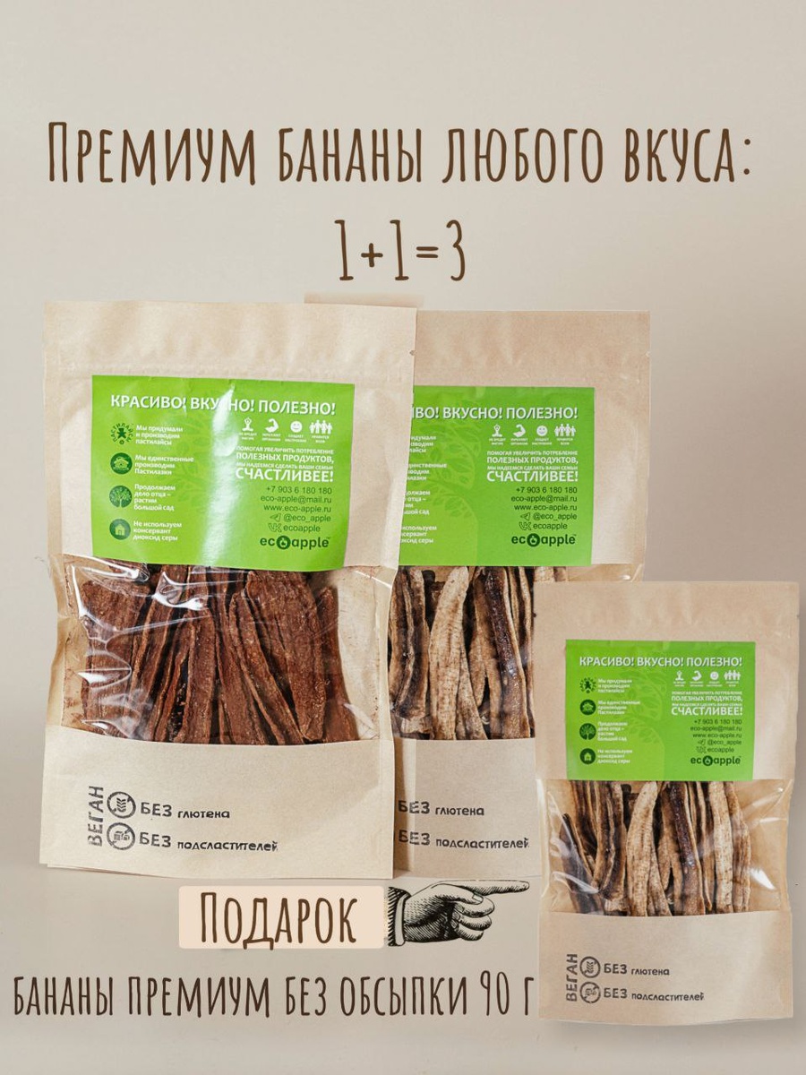 Главная новость выходных - стартанула акция на ваши любимые бананы в какао/кэробе/кофе. Они были на втором месте по голосованию после завтраков. Акцию всегда делаем с выходных, чтобы все, кто не увидел на сайте, могли добавить в заказ до отправки в понедельник 🙏🏻 Акция, как всегда, с подарками: при покупке двух пачек, вы получаете в подарок третью 💚 Подробности читайте на сайте🍏 В галерее тоже картинки с акцией ⤴️ Вяленые бананы - натуральная альтернатива сладостям из рафинированных продуктов🍌 Очень актуально для начинающегося учебного года, дождливой осени и вечных проблем, чтобы такого съесть, чтобы сладко и не вредно. Есть возможность запастись, срок годности 6 месяцев. Отправляются вам сразу после изготовления 🤝