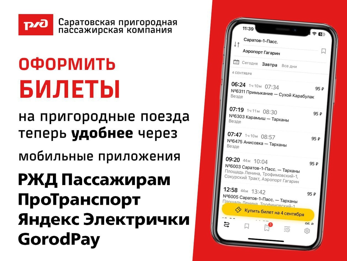 📣Уважаемые пассажиры📣 В связи с изменениями в законодательстве РФ с 1 сентября 2025 года прекращают работу билетопечатающие автоматы. Для вашего удобства и дальнейшего оформления билетов на пригородные поезда, рекомендуем установить одно из актуальных приложений: • «РЖД Пассажирам»; • «ПроТранспорт»; • «Яндекс Электрички»; • «GorodPay»; Преимущества использования цифровых сервисов: • Экономия времени: Возможность оформления электронных билетов. • Актуальная информация: Доступ к маршрутам и расписанию в режиме реального времени. • Удобство хранения: Сохранение билетов непосредственно на вашем устройстве. • Кэшбек при оплате билета через СБП в «РЖД Пассажирам» Вы можете скачать указанные приложения в App Store, Google Play, AppGallery, RuStore и других популярных магазинах приложений. Благодарим за понимание и желаем приятных поездок! С уважением, АО «Саратовская ППК»