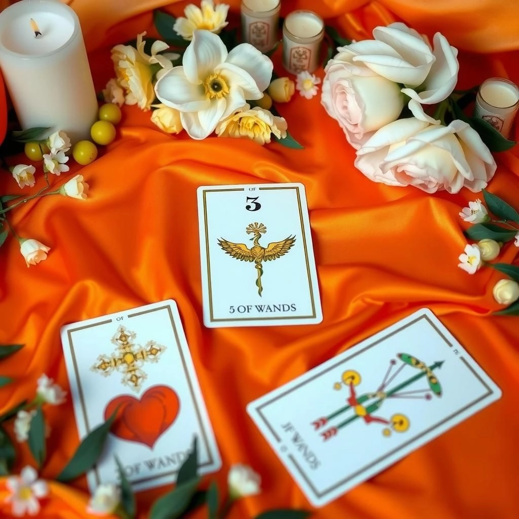 Глубокий анализ: На более глубоком уровне Пятёрка Пентаклей говорит о том, что, несмотря на его интерес (как показано в Тройке Жезлов), он может испытывать неуверенность в себе или в ситуации. Возможно, он боится, что его усилия не будут оценены, или чувствует себя эмоционально уязвимым, что сдерживает его инициативу. Эта карта может также указывать на то, что он переживает некий внутренний кризис или ощущение "недостаточности" (например, думает, что не может предложить Вам достаточно). Его желание добиваться Вас есть, но страх отвержения или потери может заставлять его действовать осторожно или даже отступать временами. Для того чтобы он продолжил добиваться Вас, ему, вероятно, нужен знак уверенности с Вашей стороны.