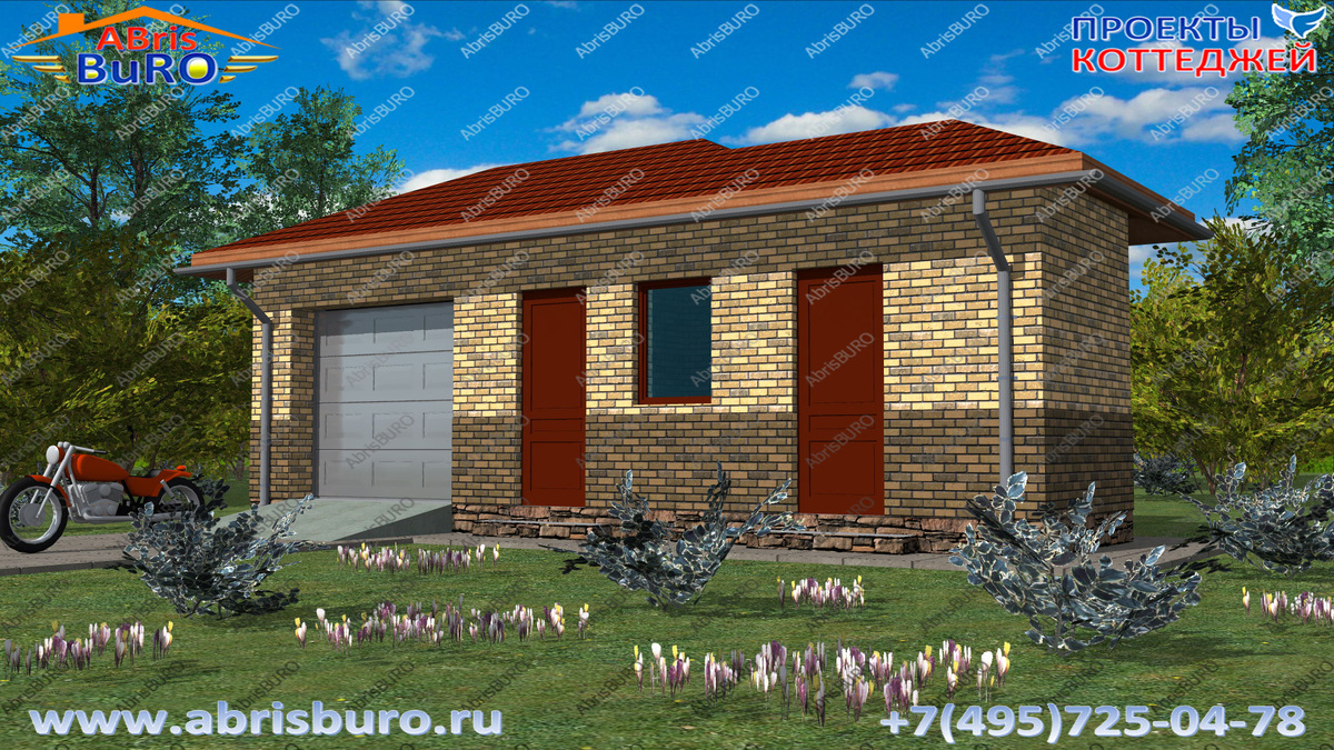 K0228-24 Проект гаража для мототехники с хозблоком из кирпича и вальмовой крышей общей площадью 24,01 кв.м. и габаритными размерами 9,5 х 4,0 метров. Проектирование домов и коттеджей, вилл и особняков, бань и гаражей в архитектурном бюро AbrisBURO-проекты коттеджей.