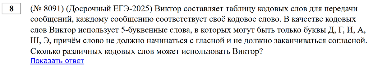 так как в нашей задаче алфавит из 6 букв - ПОБЕДА, то работаем с 6-ричной системой счисления