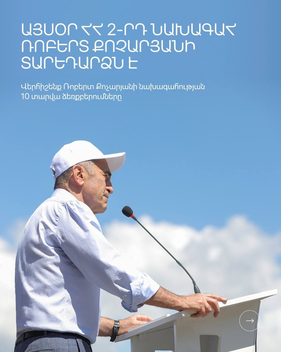 ՀՀ 2-րդ նախագահ Ռոբերտ Քոչարյանն այսօր նշում է իր 71-ամյակը Ռոբերտ Քոչարյանի ձեռքբերումները ոչ միայն անցյալի պատմություն են, այլ նաև ուղեցույց՝ արժանապատիվ ապագայի համար։ Հայաստանը պետք է շարժվի առաջ՝ նորարարությամբ, անվտանգությամբ, ուժեղ տնտեսությամբ և վստահ հասարակությամբ։