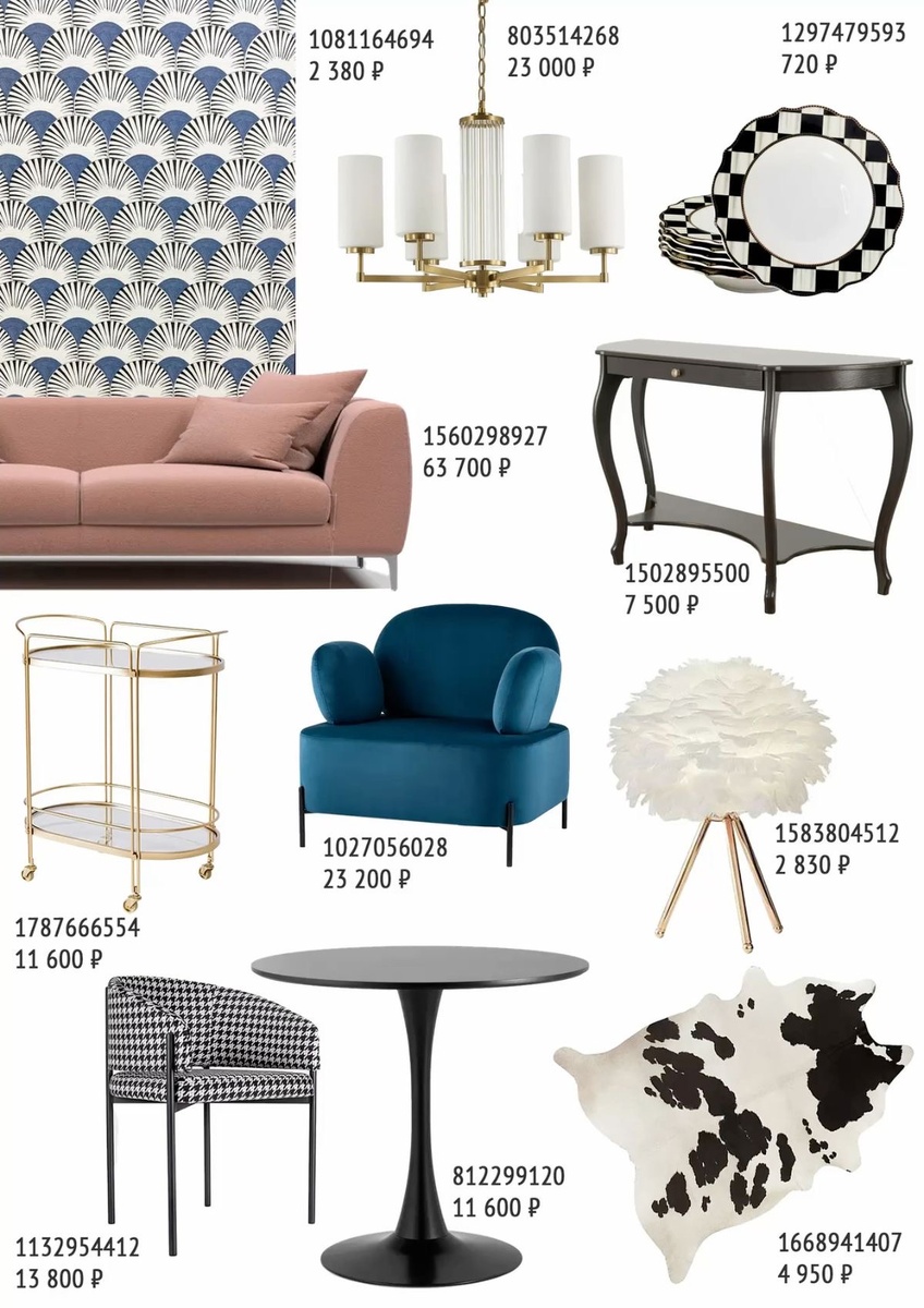 Этот сет — готовая формула «тихой роскоши»: пыльно-розовый, глубокий синий, чёрно-белая графика и благородная латунь. Идём строго по порядку — разберём каждую вещь с фото, что она «делает» в пространстве и как её стилизовать. В каждом пункте кликабельный артикул ведёт на карточку товара на Ozon.