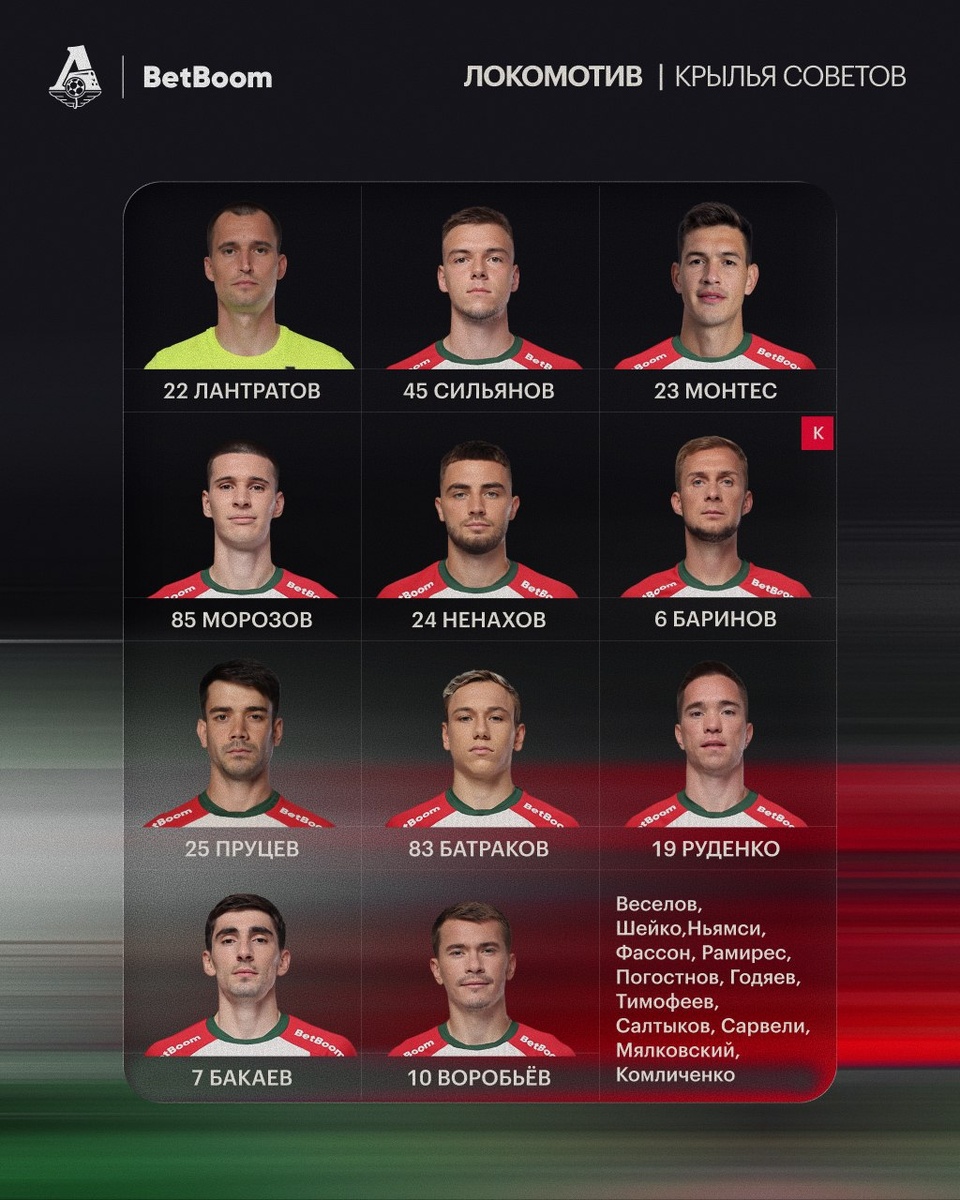 Поехали! У Пруцева — дебют за «Локомотив», у Лантратова — первый матч в Мир РПЛ в этом сезоне. Митрюшкин и Карпукас вне заявки по медицинским показаниям.