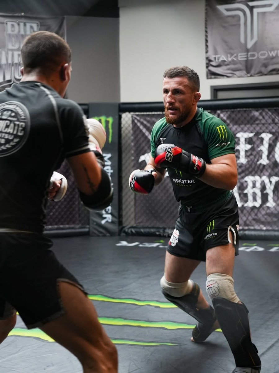 Двалишвили продолжает подготовку к третьей защите титула 🏆 Мераб явно не собирается останавливаться 😎 5 октября смотрим его поединок против Сэндхагена на UFC 320 ⚔️ 📷 социальные сети Двалишвили