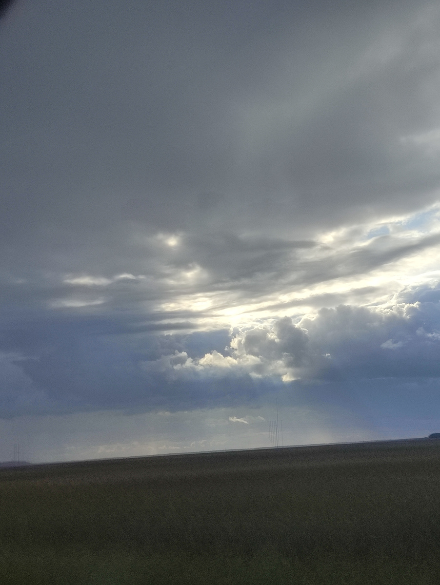 На обратной дороге мы пытались убежать от дождя. В прямом смысле. Места, где мы ехали, в основном равнинные. Открывается горизонт и потрясающие виды.