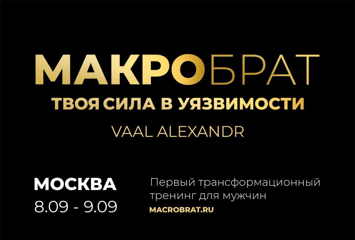 🆘12ч ДО ПОВЫШЕНИЯ СТОИМОСТИ МАКРОБРАТ | МОСКВА ⏰8-9 сентября 📍 Москва, выездной формат 🧍♂для мужчин В стоимость входит проживание и питание Бронируй место ⬇️ https://macrobrat.ru/msk МАКРО Я | ЯРОСЛАВЛЬ ⏰7-9 ноября 📍Ярославль, выездной формат 👫для мужчин и женщин В стоимость входит проживание и питание Бронируй место ⬇️ https://iavaal.com/macro_am