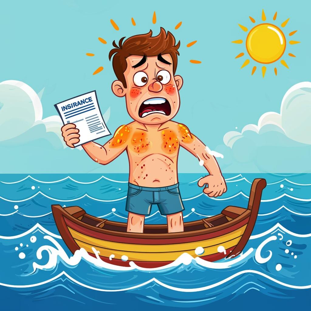 Турист Андрей поехал на экскурсию на яхте в Таиланде. Заснул на палубе под палящим солнцем без рубашки. Результат — солнечные ожоги второй степени, волдыри и адская боль. Местный врач прописал дорогие мази, покой и прохладные компрессы. Проблема: