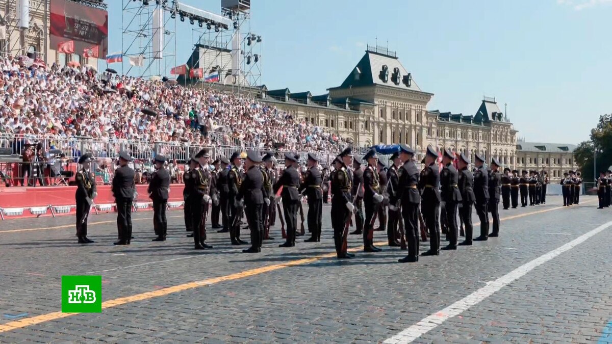 [ Смотреть видео на сайте НТВ ] Сегодня в Москве завершается международный музыкальный фестиваль «Спасская башня». В этом году он был посвящен 80-летию Великой Победы. В столицу приехали военно-музыкальные коллективы из Белоруссии, Италии, ОАЭ, Сербии и Эфиопии. Они исполняли классическую и эстрадную музыку, народные и военные песни. За 19 лет существования этого проекта на Красной площади выступили свыше 160 коллективов из 57 стран мира, а число зрителей приближается к миллиону. [ Смотреть видео на сайте НТВ ]