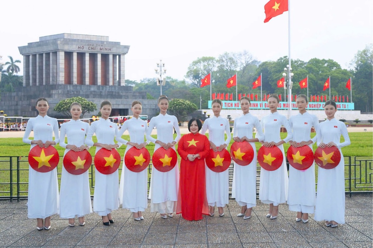 Участницы конкурса Vietnam's Next Top Model 2025 вместе с официальным представителем организатора конкурса.