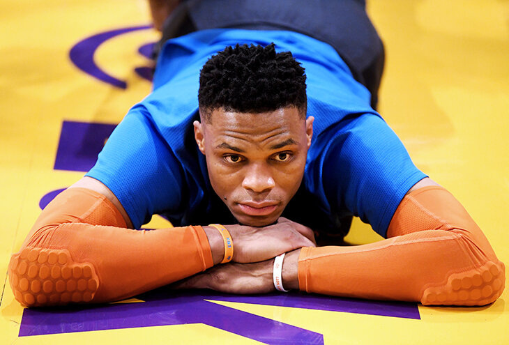 Итак, что предъявить Уэстбруку? Очевидно – в качестве лидера он не выигрывал в плей-офф. Если взять глубже – при феноменальных природных данных он никак не изменил/развил свою игру, а это могло бы помочь побеждать, особенно при приобретении праймового Пола Джорджа.