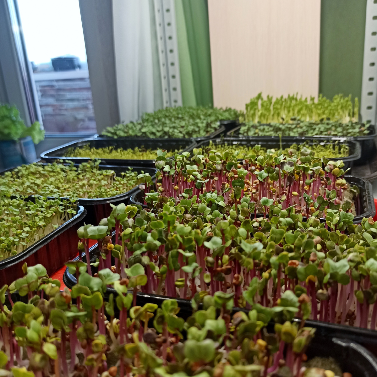 📌 Рубрика: Зелёная полка Микрозелень редиса — это маленький огонь на кончике языка. Пикантная, бодрая, с ярким хрустом. Она придаёт блюду не просто вкус, а настроение: живое, свежее, с искрой. Именно редис выбирают те, кому хочется не просто зелени, а зелени с характером. Прорастает редис быстро — уже на 4-5 день можно срезать первый урожай. Он не боится капризов температуры, растёт дружно, и наблюдать за тем, как из семечек появляются сердцевидные листики — одно удовольствие. 💚 Что в составе: Витамин C — мощный антиоксидант, поддерживает иммунитет и состояние кожи Витамины группы B — улучшают обмен веществ и нервную систему Витамин K — способствует укреплению костей Витамин E — защищает клетки от старения Железо, магний, кальций, цинк, калий — для крови, костей, работы сердца и общего тонуса Антоцианы и глюкозинолаты — природные противовоспалительные соединения Редисовая микрозелень способствует мягкому очищению организма, улучшает пищеварение и помогает справляться с авитаминозом