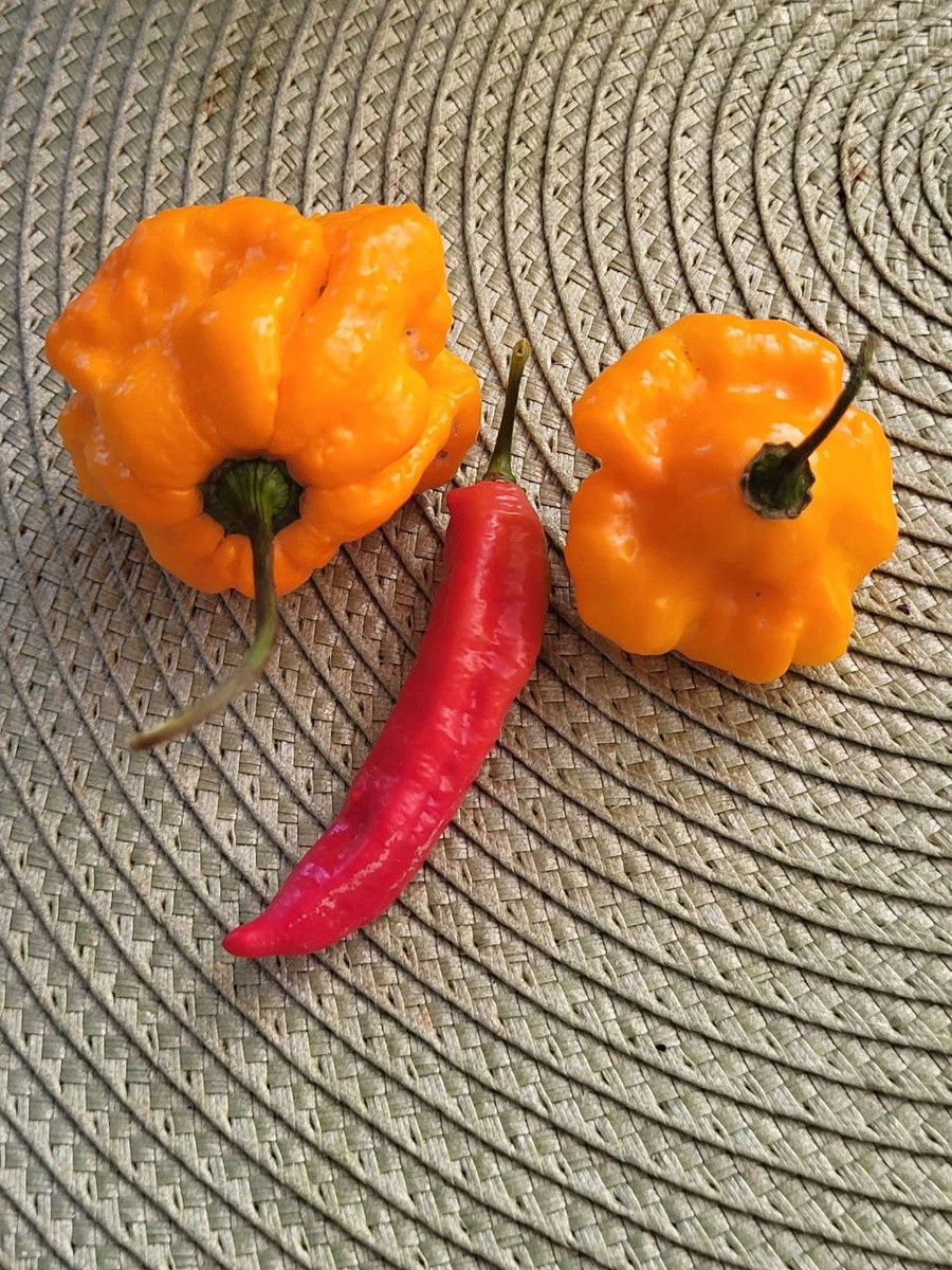 Какие разные бывают перцы! Здесь знакомый вам Cabaca Vermelho и ямайский Scotch Bonnet MOA. MOA в названии сорта расшифровывается как Министерство сельского хозяйства (специальный сорт для местных фермеров 😁)