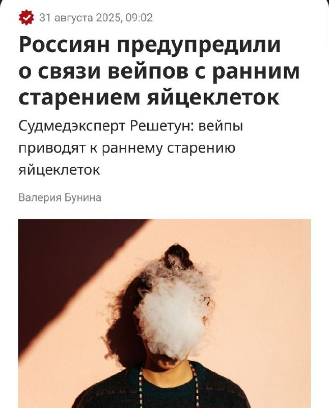 Вейпы реально уничтожают яйцеклетки — российские врачи советуют срочно завязывать с парилками, особенно девушкам. Фишка в том, что в отличие от мужчин, у женщин яйцеклетки не обновляются. И каждая затяжка вейпа напрямую бьёт по их резерву. Что в рисках: ранний климакс, бесплодие, патологии у будущего ребёнка. И самое жёсткое — даже если бросить, часть изменений может остаться навсегда. Мы предупредили. Подробнее: https://hard-tm.su/threads/111000/ 🕹HARD-TM — Подписаться