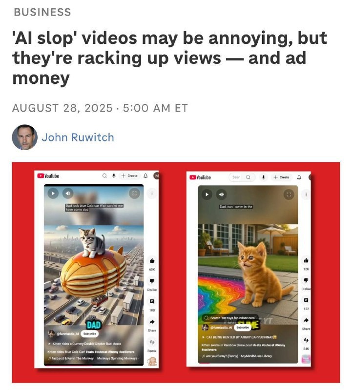 21-летний студент с Филиппин рубит до $9000 в месяц на ИИ-котах. Парень ведёт YouTube-канал Funtastic Yt с брейнрот-контентом и недавно дал интервью западным СМИ. Вся «работа» занимает у него около двух часов в день: ролики генерит нейросеть, а сценарии рандомно накидывает ChatGPT — он просто выбирает самые смешные. На канале уже 600k подписчиков и более 500 млн просмотров. Пик заработка был в мае — почти $9000 только с монетизации. И вот вопрос: почему это не вы? 😮💨 Подробнее: https://hard-tm.su/threads/111002/ 🕹HARD-TM — Подписаться
