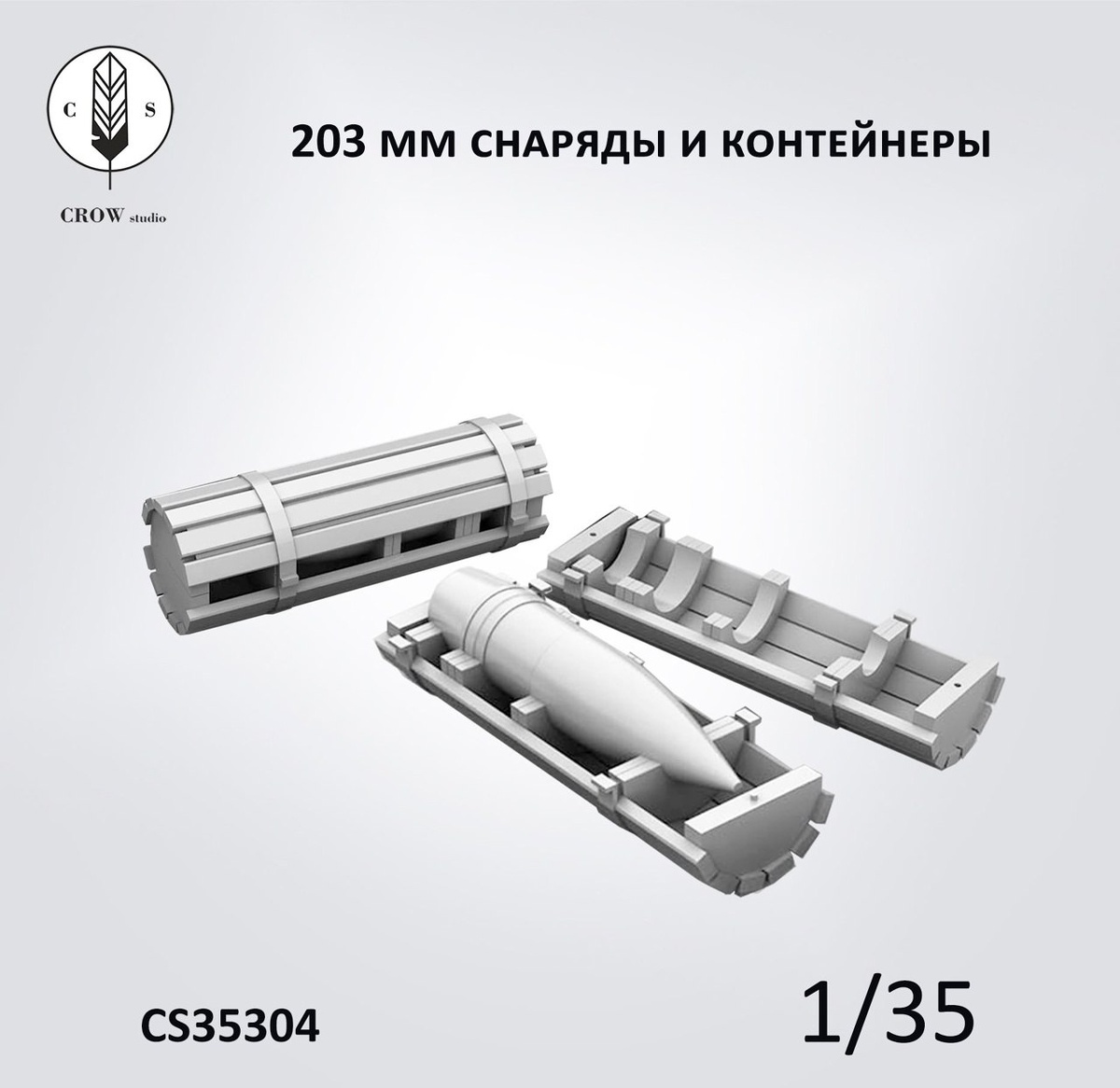 Санкт-петербургская CROW Studio выпустила на 3D-принтере модели 203-мм снарядов в транспортировочной укладке для модели Б-4 в масштабе 1/35 от "Звезды".