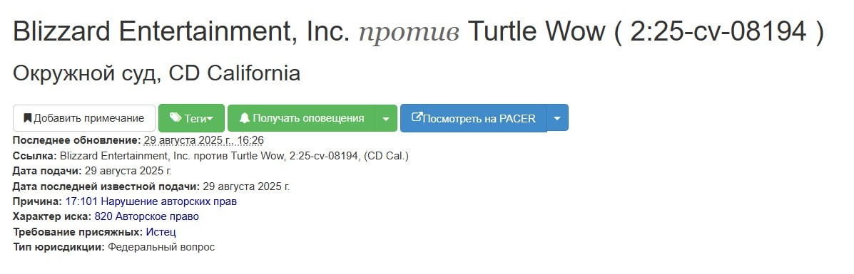 Blizzard подала в суд на крупнейшего на рынке провайдера частных серверов Classic+ за нарушение авторских прав. Первый пошел, как говорится...☺️ А то слишком были на слуху у всех со своим новым движком, будем посмотреть, к чему все это приведет 📱Twitch📱YouTube📱Rutube 📱Dzen🌐wowloot.ru📱vk