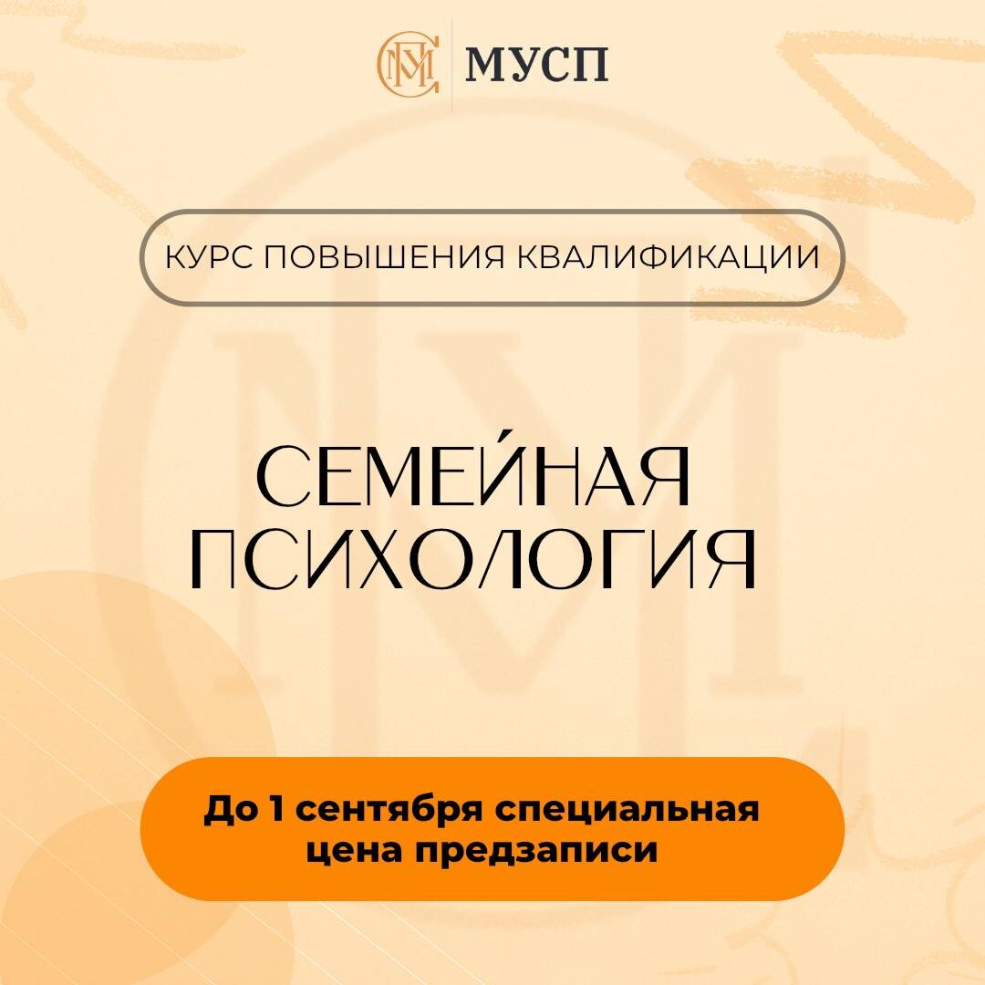Семейная психология: курс повышения квалификации Отношения внутри семьи проходят разные этапы — от влюблённости до кризисов, от гармонии до напряжений. 🤝Понимание этих процессов помогает психологу и консультанту не только сопровождать клиентов, но и предупреждать серьёзные конфликты. В нашем курсе повышения квалификации по семейной психологии вы: ➡️разберёте ключевые модели и подходы к динамике семьи; ➡️конфликты в детско-родительских отношениях и пути их разрешения ➡️освоите методы профилактики и помощи в кризисных ситуациях. 📌Важно: до 1 сентября действует специальная цена предзаписи. После 1 сентября стоимость повышается. 🀄️ Осталось всего несколько мест на поток. 💡Если вы ещё сомневаетесь, у вас есть возможность получить *демо-доступ и попробовать программу вживую. Это поможет принять решение и понять, насколько курс подходит именно вам. ЗАПИСАТЬСЯ НА КУРС