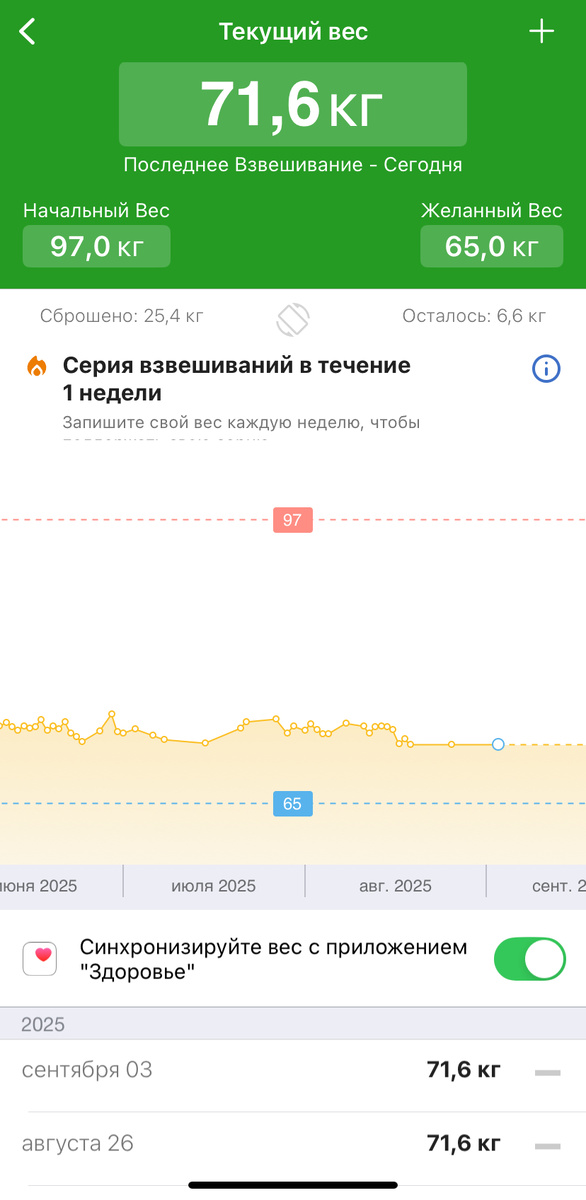 Приветствую вас на моем канале. Меня зовут Юля. Мне 34 года. Я худею с 97 килограмм. Моя цель 65 килограмм. Я худею на подсчете калорий. На данный момент я сбросила уже больше 23 килограмм. Я не беру свой метод похудения за рекомендацию для всех. У каждого своя физическая активность и норма калорий, аллергии и пищевые непереводимости. Фото тарелок это то, чем я действительно питаюсь: как пример, что можно худеть и на обычной еде, которую вы готовите для всей семьи. Плюс на моем канале вы найдете много интересных и простых рецептов. Мой канал это мой личный дневник. Но я всегда рада новым знакомствам и открыта для общения и диалога. Здесь не место для конфликтов и нецензурной лексики. Вчера что-то глюкнуло в приложении и вес не сохранился. Вносила вручную сегодня. Это обидно. Вот так пропустишь какой-то глюк и все результаты сотрутся. Поэтому я все дублирую в рукописную таблицу. С собой сложила сантиметр и записи. Измерениям в отпуске быть. Весы не потащу. 🤪 Мои замеры за неделю. Ми