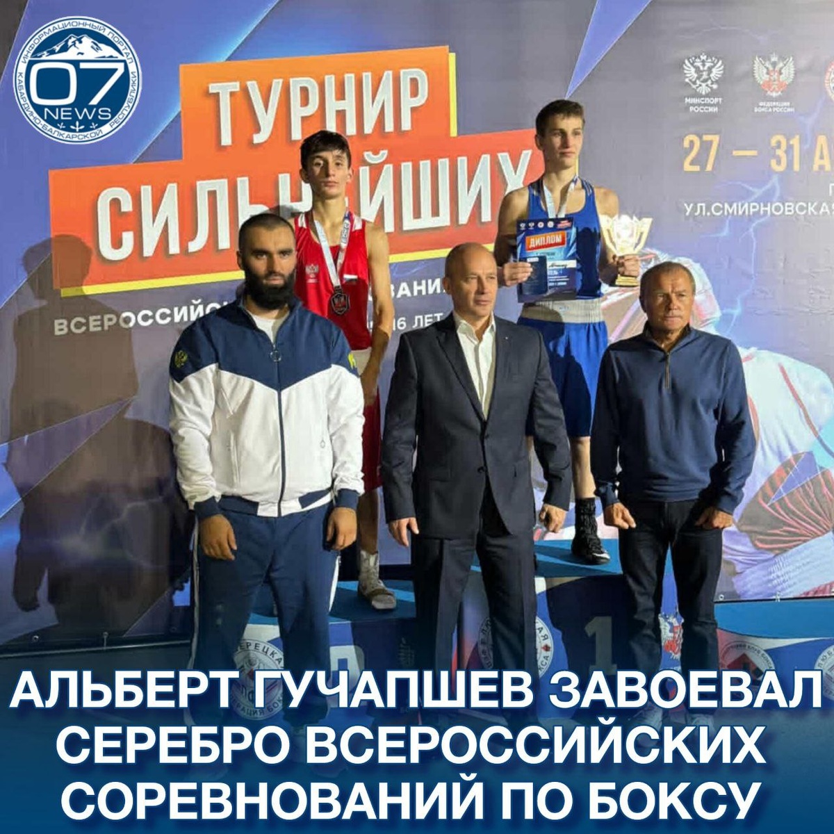 В Люберцах завершились Всероссийские соревнования по боксу среди юношей 15-16 лет «Турнир сильнейших». В спортивных соревнованиях принимали участие 54 спортсмена из 25 регионов Российской Федерации в 13 весовых категориях: 46 кг, 48 кг, 50 кг, 52 кг, 54 кг, 57 кг, 60 кг, 63 кг, 66 кг, 70 кг, 75 кг, 80 кг, 80+кг. Гостем соревнований стал бронзовый призёр чемпионата мира, чемпион Европы Двали Дмитрий. Победа на турнире дает путевку на участие в Играх стран СНГ, а это серьезный, престижный турнир. Наш земляк Альберт Гучапшев завоевал серебряную медаль 🥈 в весовой категории 57 кг. Тренирует спортсмена Аслан Кучменов. Поздравляем бойца и его наставника! Успехов и больших достижений!